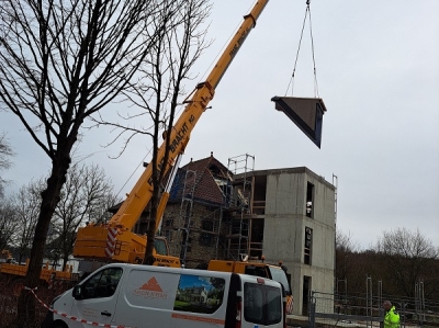 Mitte Januar erfolgte im Dachgeschoss, Erlebnisraum Wald, der erste Durchbruch zum Treppenhaus des Neubaus.