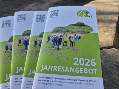 Unsere aktuellen Angebote für das Jahr 2026 finden Sie nun auf unserer Homepage. Die gedruckte Version erhalten Sie bei uns im Liz, der Touristik, der Möhneseeschifffahrt und anderen Einrichtungen in der Region.
