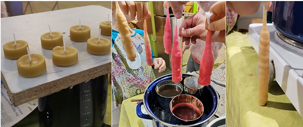 In der vergangenen Adventszeit fand erstmalig das Programm "Kerzen ziehen" im Liz statt. Bei dieser nachhaltigen Recyclingaktion erhielten die Teilnehmer:innen unter anderem Hintergrundinformationen über die verschiedenen Rohstoffe wie Paraffin, Stearin und Bienenwachs. Auch über die frühere Tätigkeit des Kerzenputzens wurde gesprochen. Damit ist das Kürzen des Dochtes und das Abschneiden von Kerzenresten gemeint, um ein schönes gleichmäßiges Abbrennen der Kerze zu gewährleisten. Aus alten Kerzenresten lassen sich auch neue Kerzen herstellen. Dies war Schwerpunkt des Programms. Die Teilnehmer:innen tauchten einen Docht in ein Wachsbad und stellten so, mit etwas Geduld, ihre Kerzen selber her. Das Verfahren des Kerzengießens wurde ebenfalls gezeigt und Teelichter gefertigt. Zum Abschluss konnten noch Bienenwachskerzen gedreht werden. Alle waren begeistert bei der Sache und so ist die Veranstaltung auch im diesem Jahr im Dezember wieder im Programm!