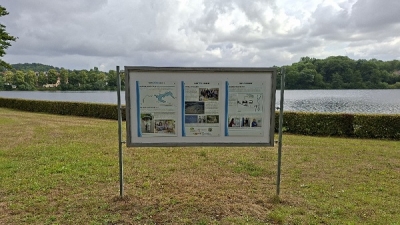 Informationstafel am Ausgleichsweiher zum Thema Wasser