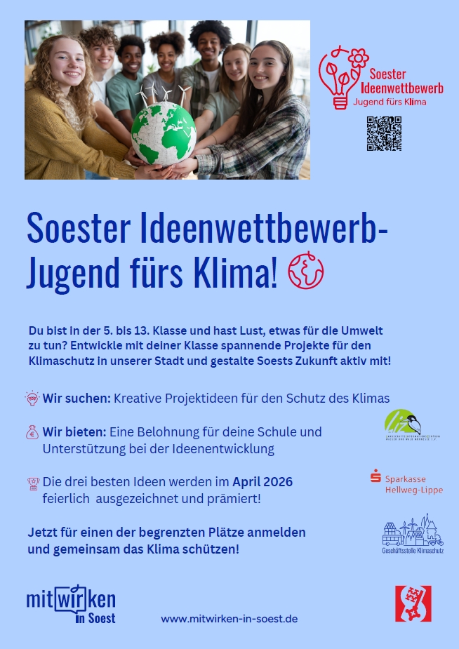 Ein gesondertes Dokument mit den wichtigsten Informationen zur Einreichung von Klimaschutz-Ideen beim Soester Ideenwettbewerb finden Sie hier: »» Infoblatt Soester Ideenwettbewerb